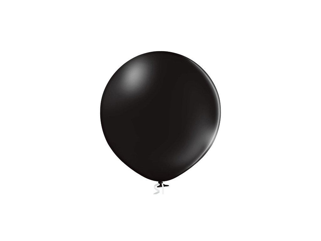 Velký černý latexový balónek o průměru 48 cm. Hluboká černá barva s kovovým leskem, vhodné pro nafukování vzduchem i héliem.
