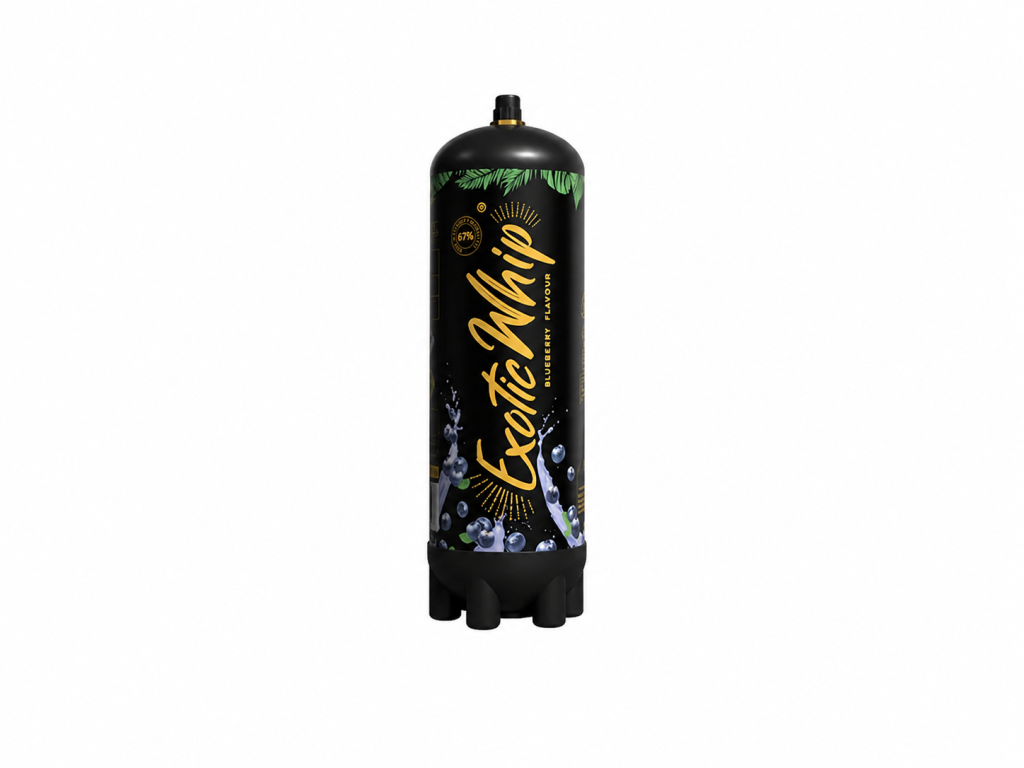 Exotic Whip 670g je vysoce kvalitní šlehačková láhev plněná 670g oxidem dusným (N₂O) s příchutí borůvky. Tento produkt je navržen pro profesionální i domácí použití v gastronomii, zejména při přípravě šlehačky, pěn, dezertů a dalších kulinářských specialit.